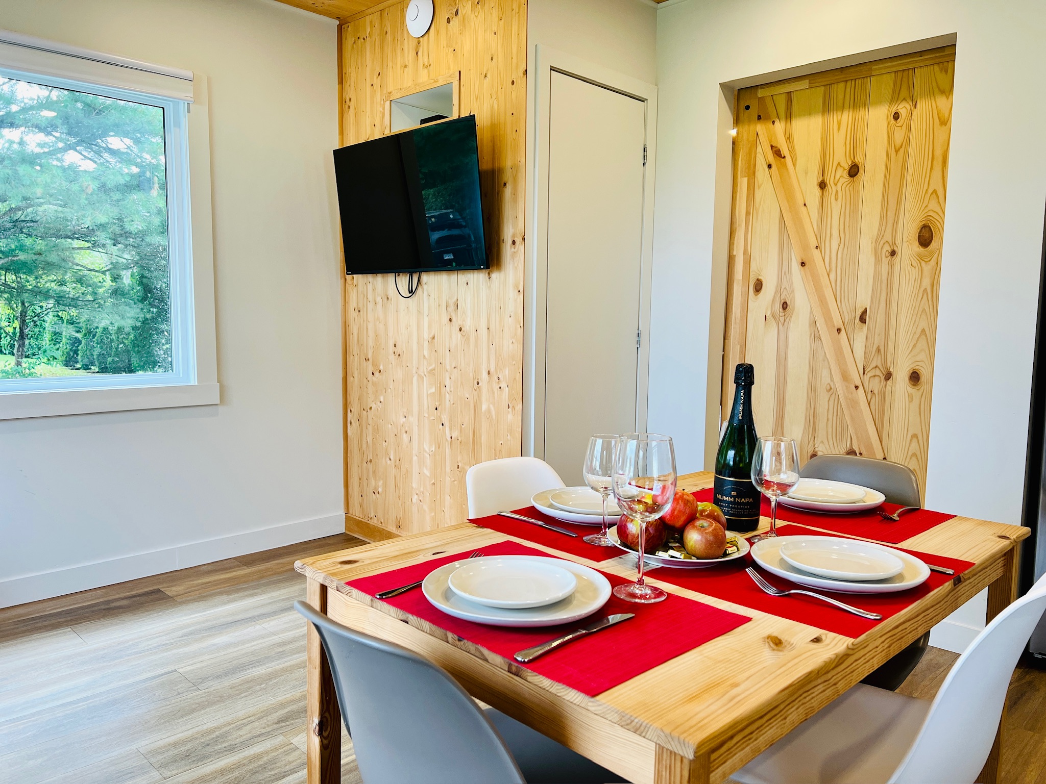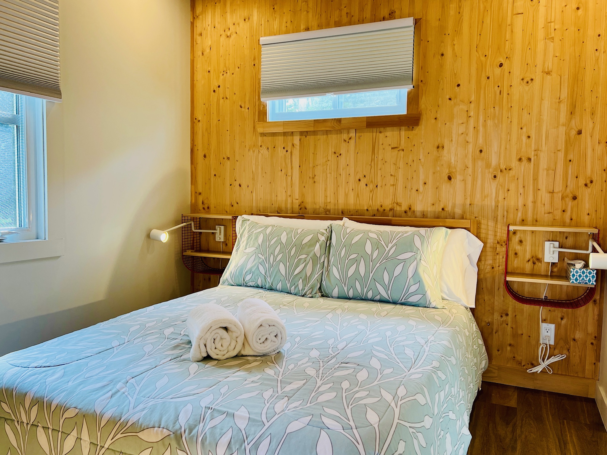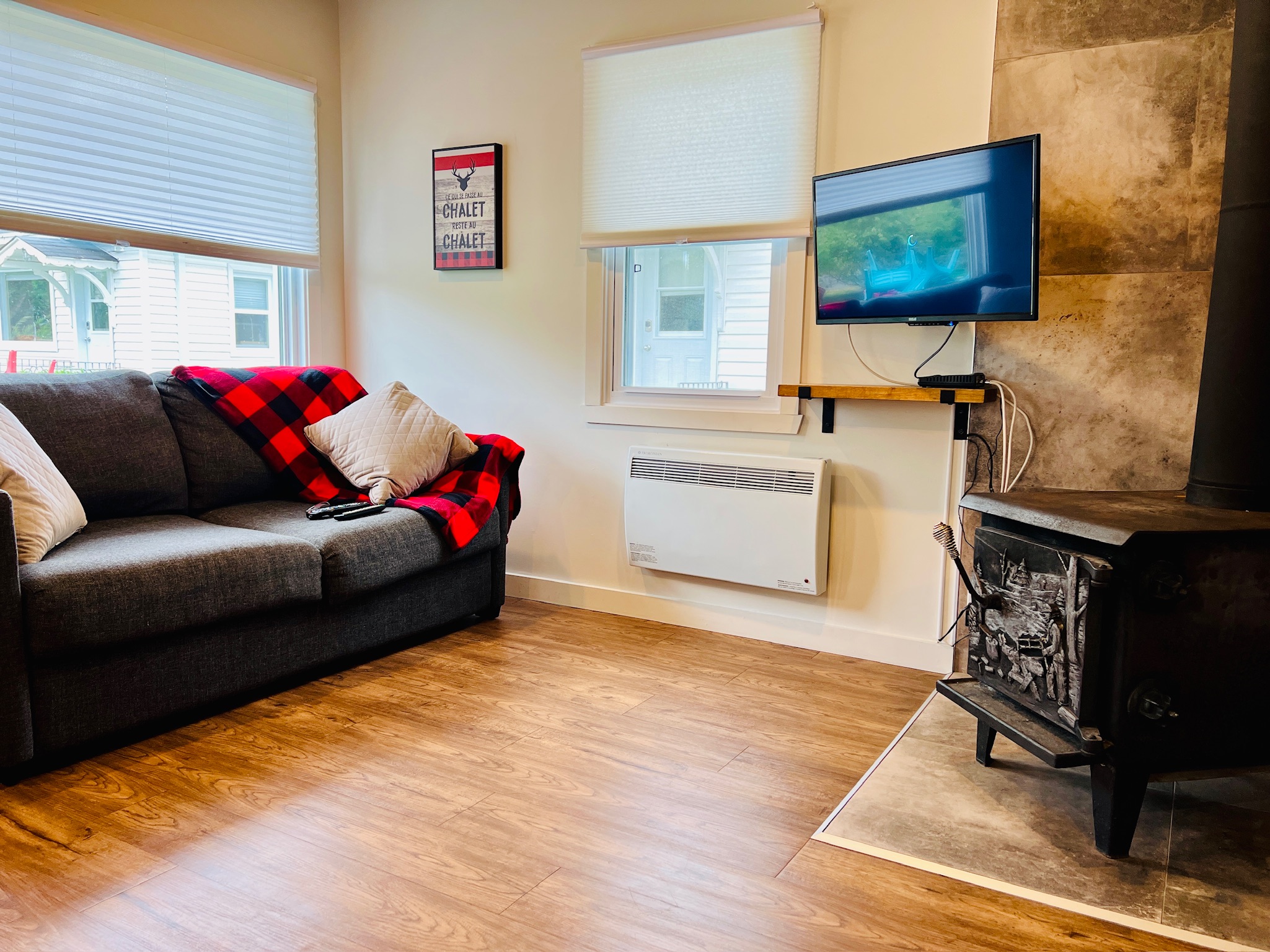 Petit chalet rustique situé dans un quartier tranquille sur un terrain à aire commune avec 6 autres petits chalets. Il y a une chambre à coucher. Ainsi qu’un divan-lit dans le salon, alors 4 personnes peuvent séjourner. Vous avez un accès à la plage Southière en passant par le parc (3 minutes à pied). Il y a 2 autres plage publiques à proximité (5 minutes en autos). Le mont Orford est situé à 7km.