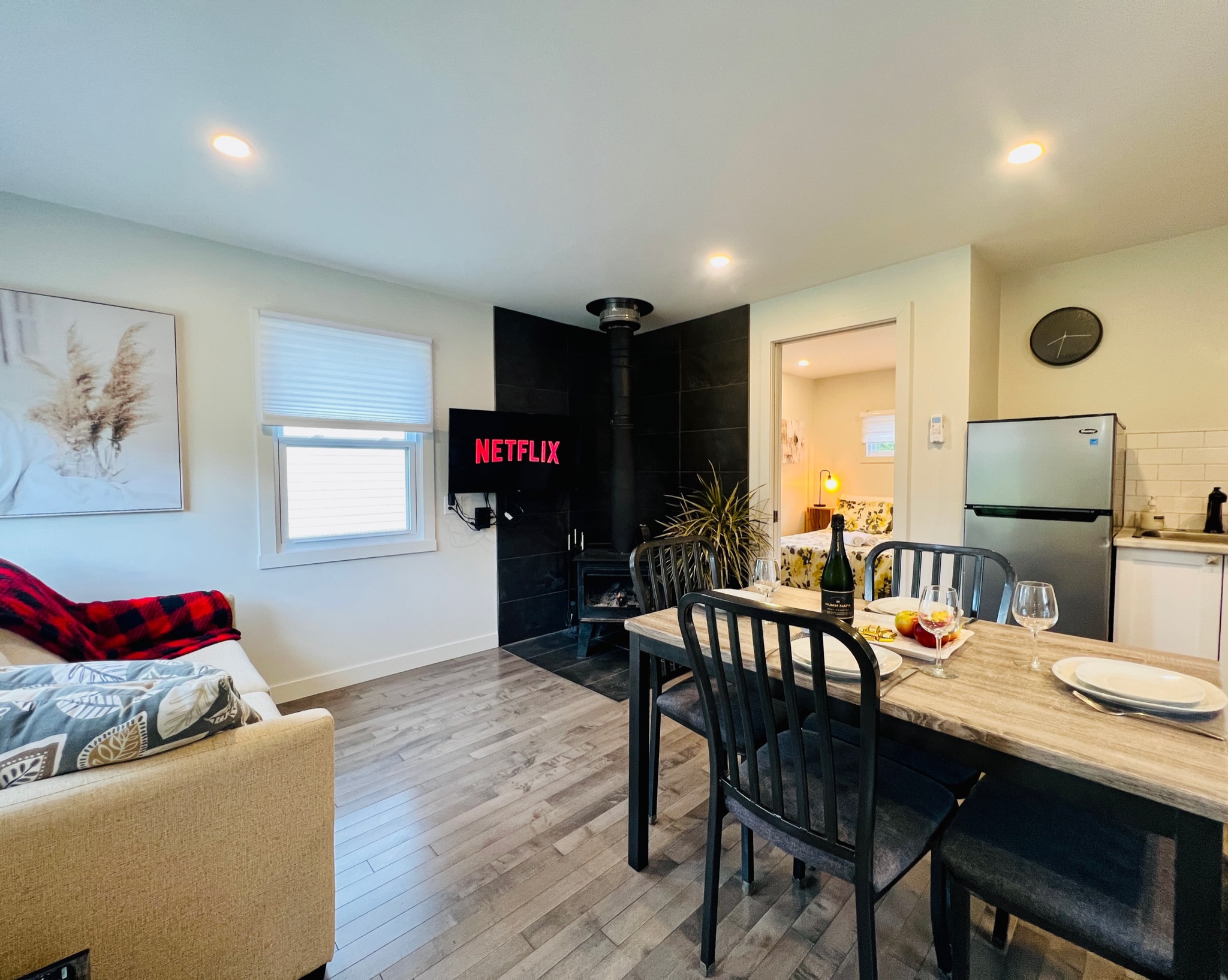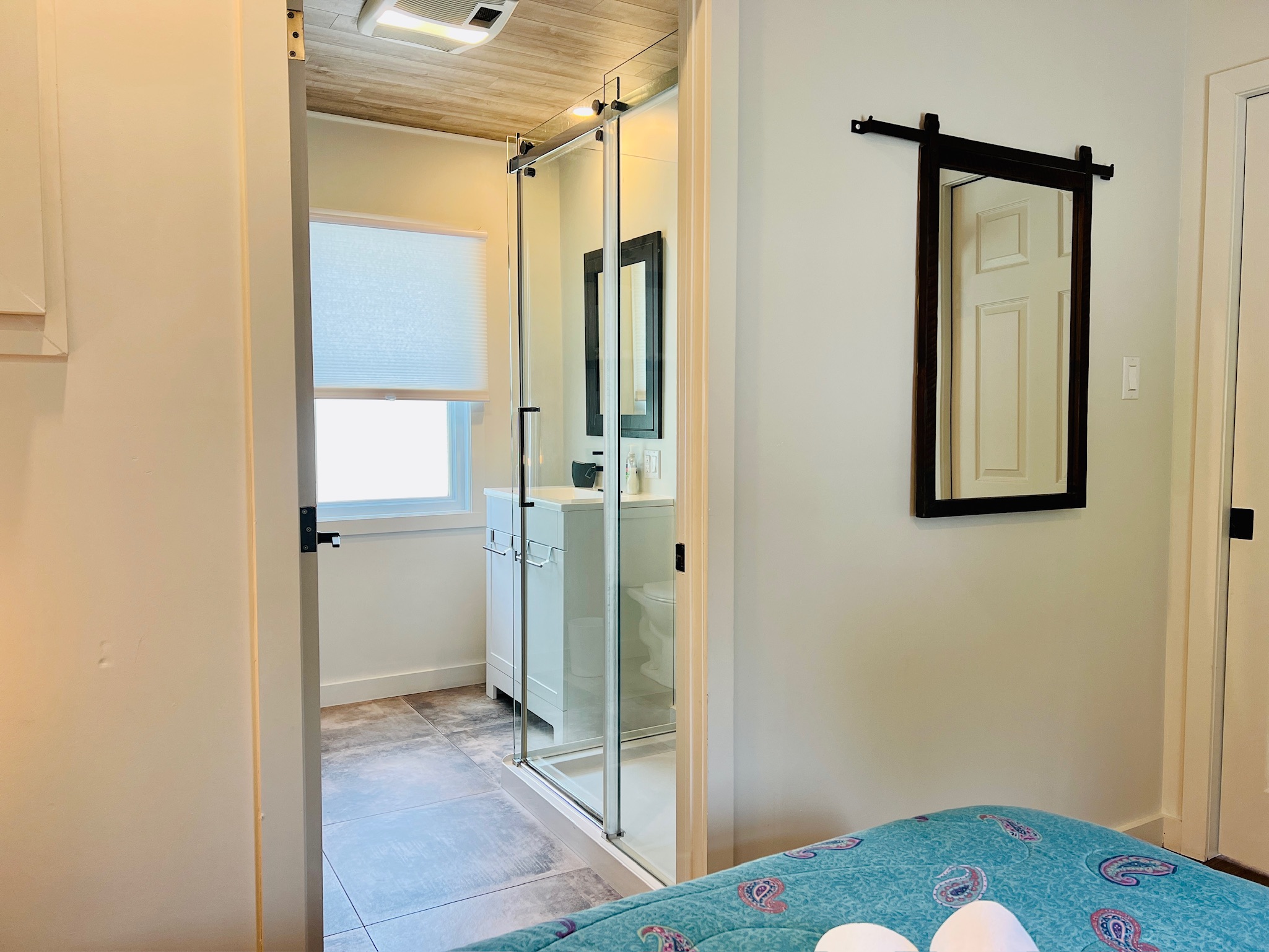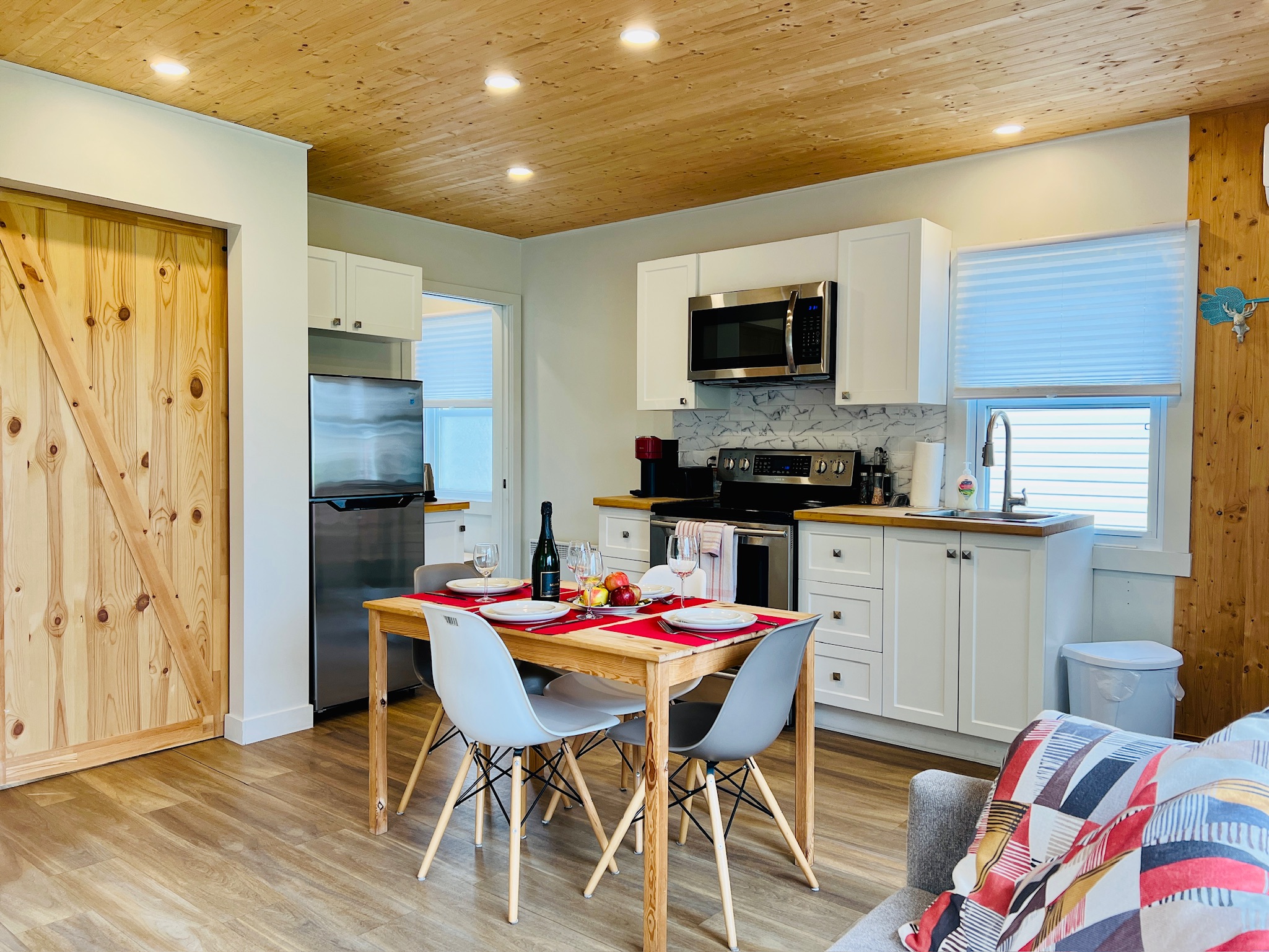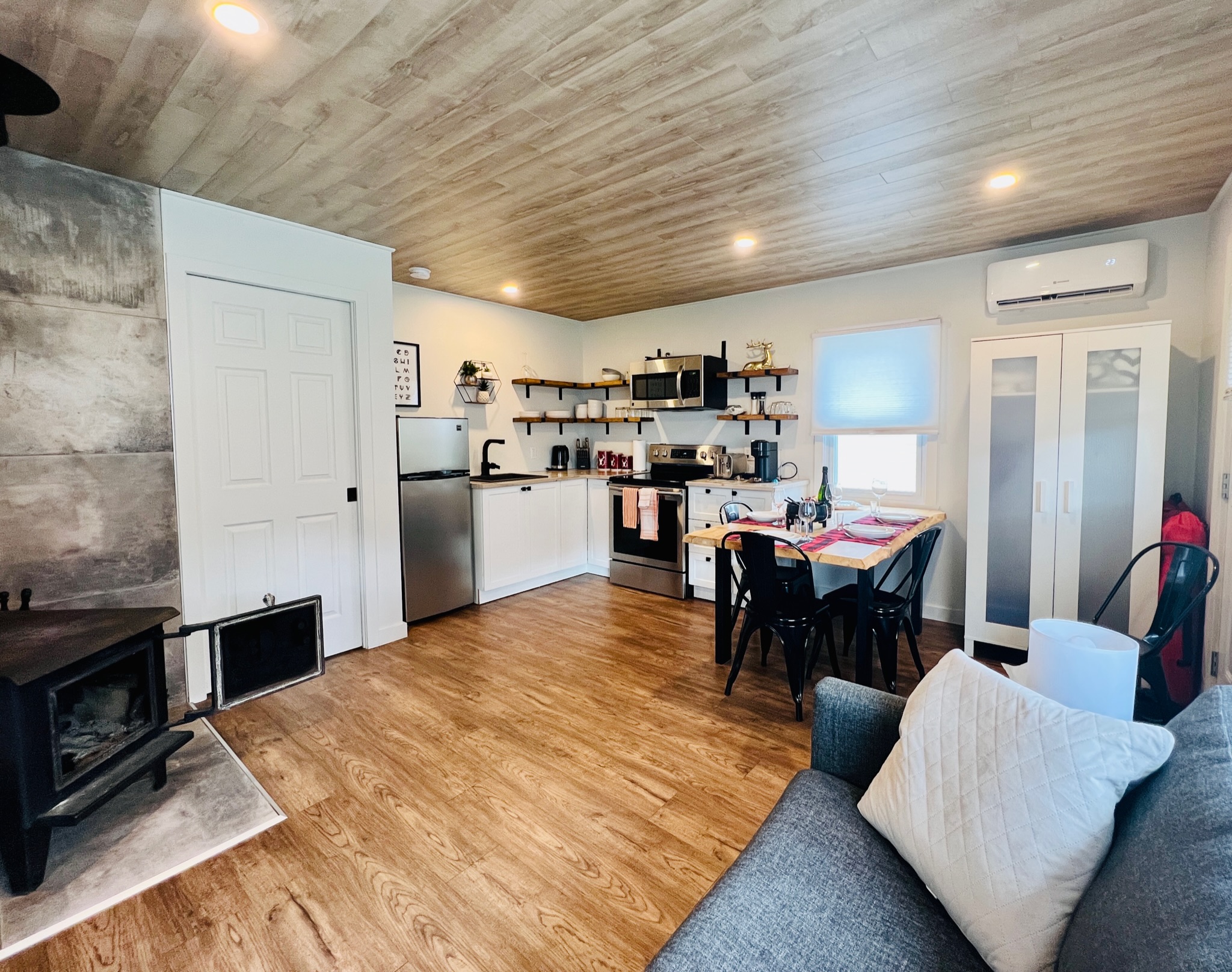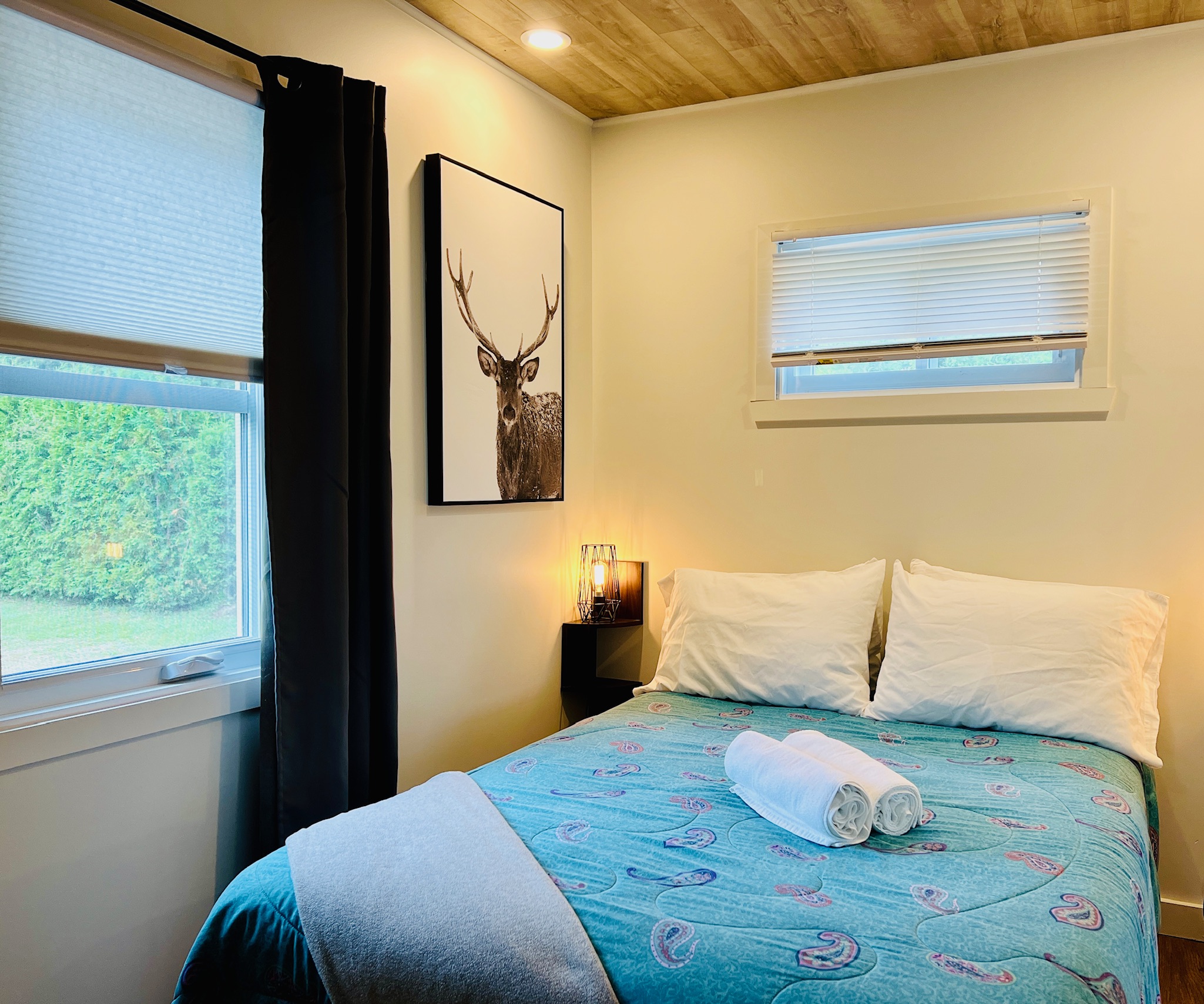 Petit chalet ENTIÈREMENT RENOVÉ. Le chalet est Idéal pour les couples puisque l’accès pour la salle de bain se fait par la chambre. La plage est à environ 300m, l’accès se fait par le parc (3 minutes à pied). Le chalet est situé dans un quartier tranquille, en plus d'être à 5 km du Centre-Ville. Vous partagez le terrain avec 6 autres petits chalets situés sur le même terrain. Plusieurs restaurants sont situés à moins de 10 minutes du chalet.