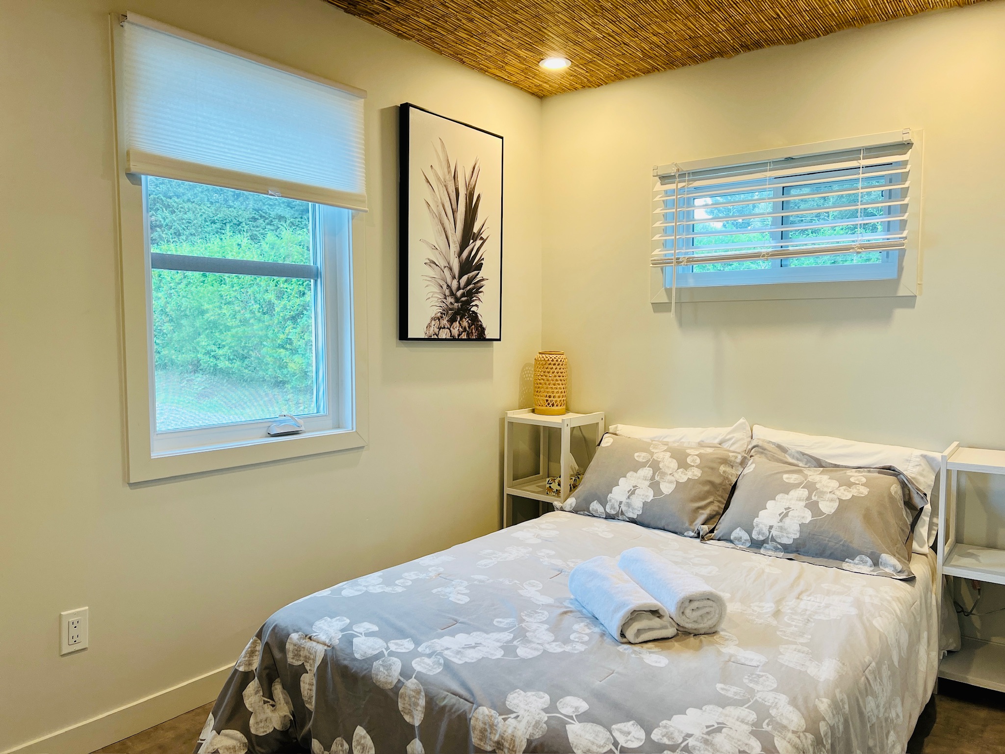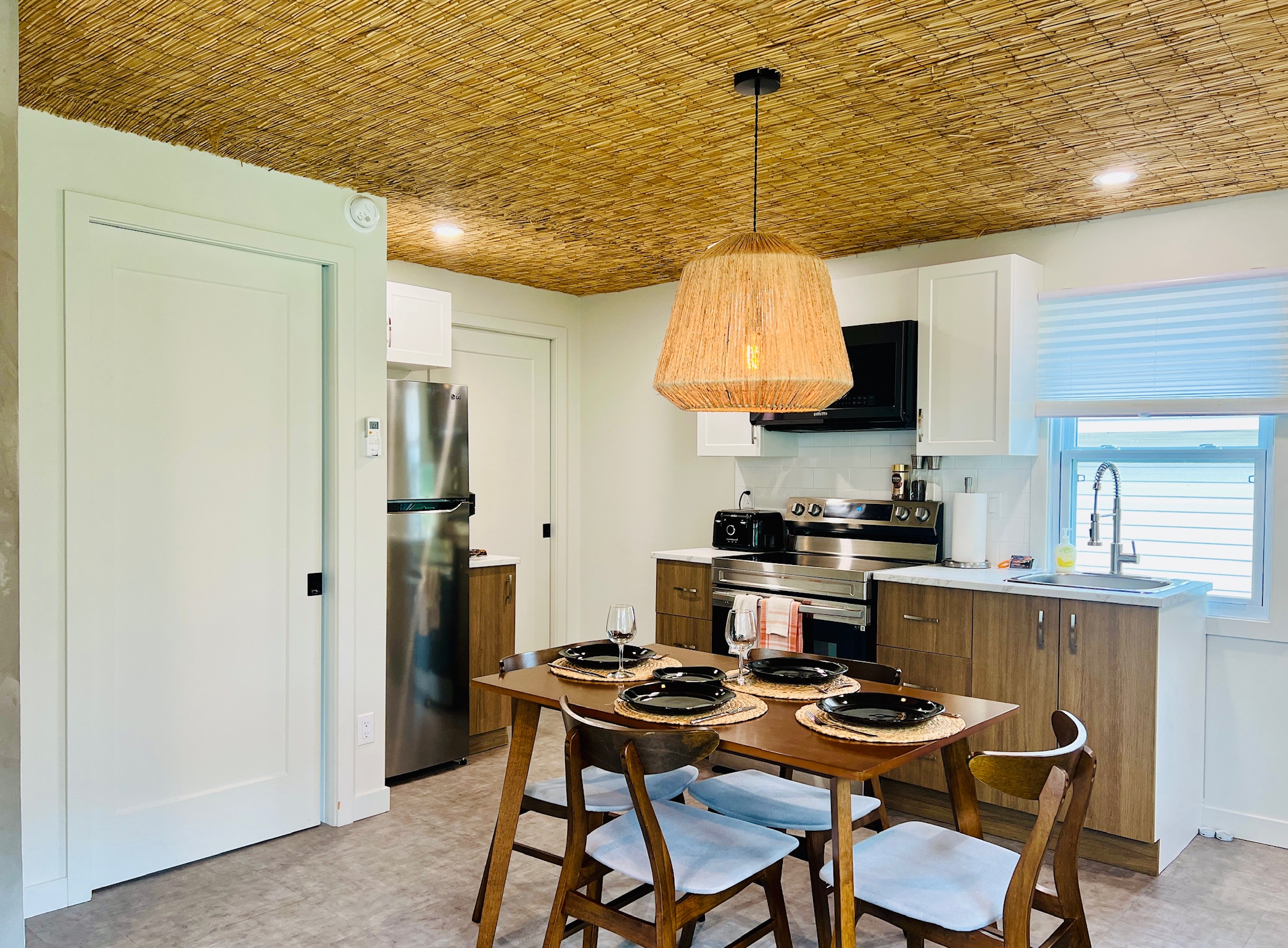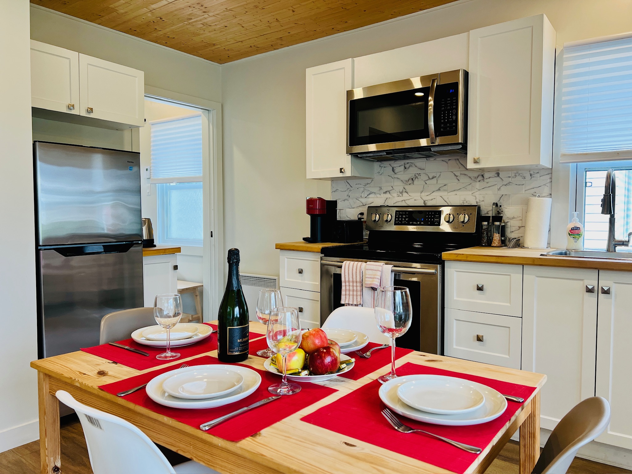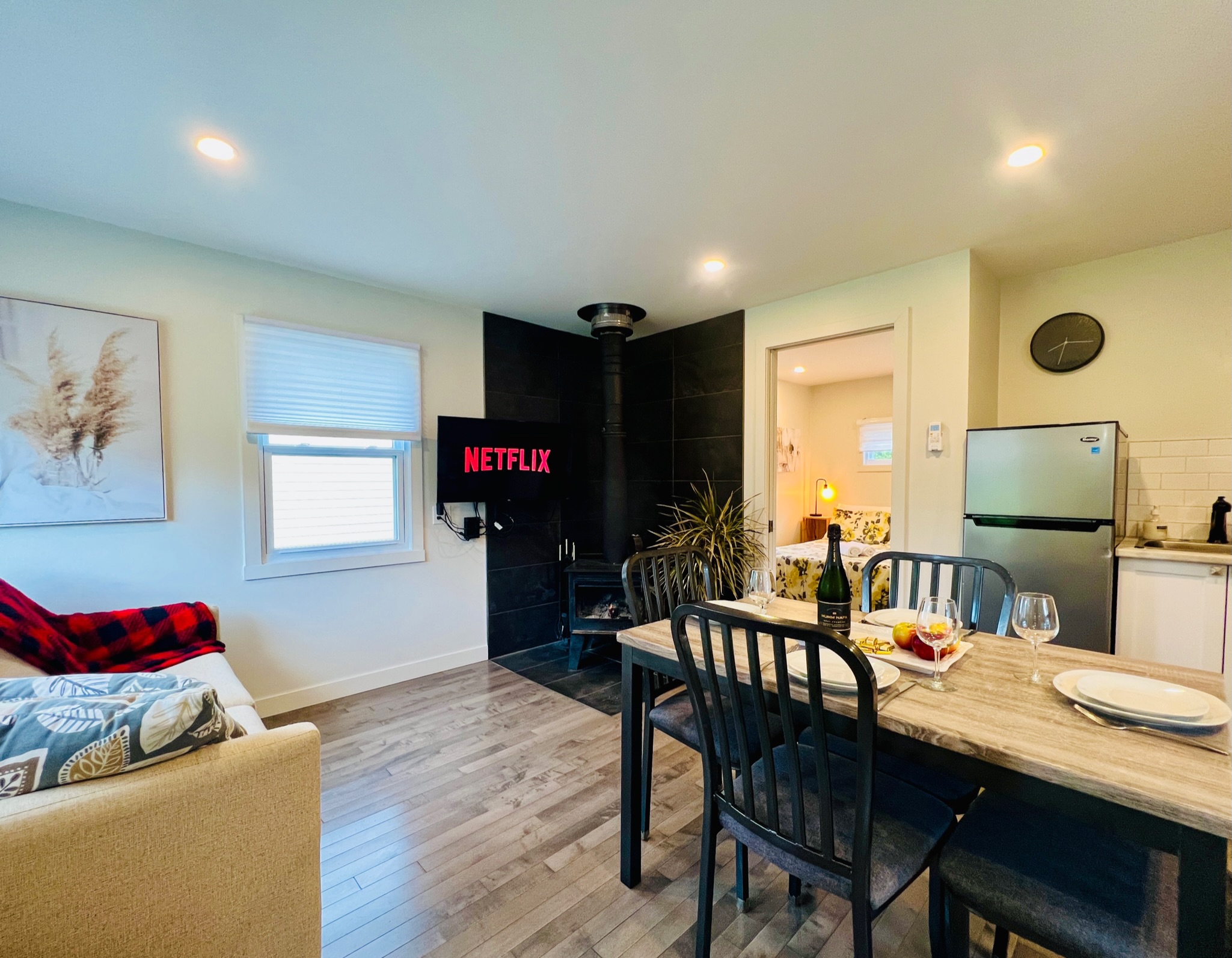 Petit chalet ENTIÈREMENT RENOVÉ. Le chalet est Idéal pour les couples puisque l’accès pour la salle de bain se fait par la chambre. La plage est à environ 300m, l’accès se fait par le parc (3 minutes à pied). Le chalet est situé dans un quartier tranquille, en plus d'être à 5 km du Centre-Ville. Vous partagez le terrain avec 6 autres petits chalets situés sur le même terrain. Plusieurs restaurants sont situés à moins de 10 minutes du chalet.