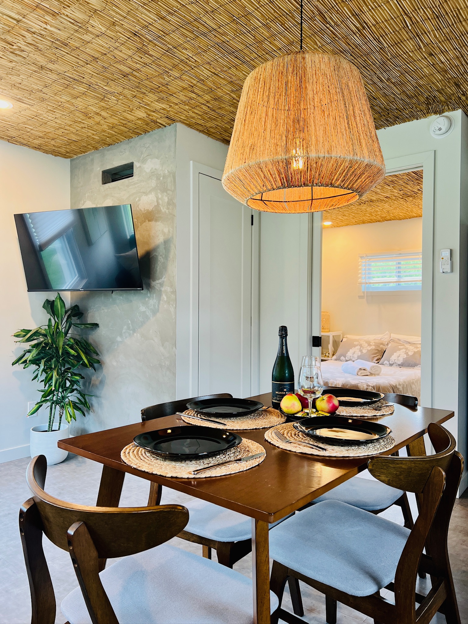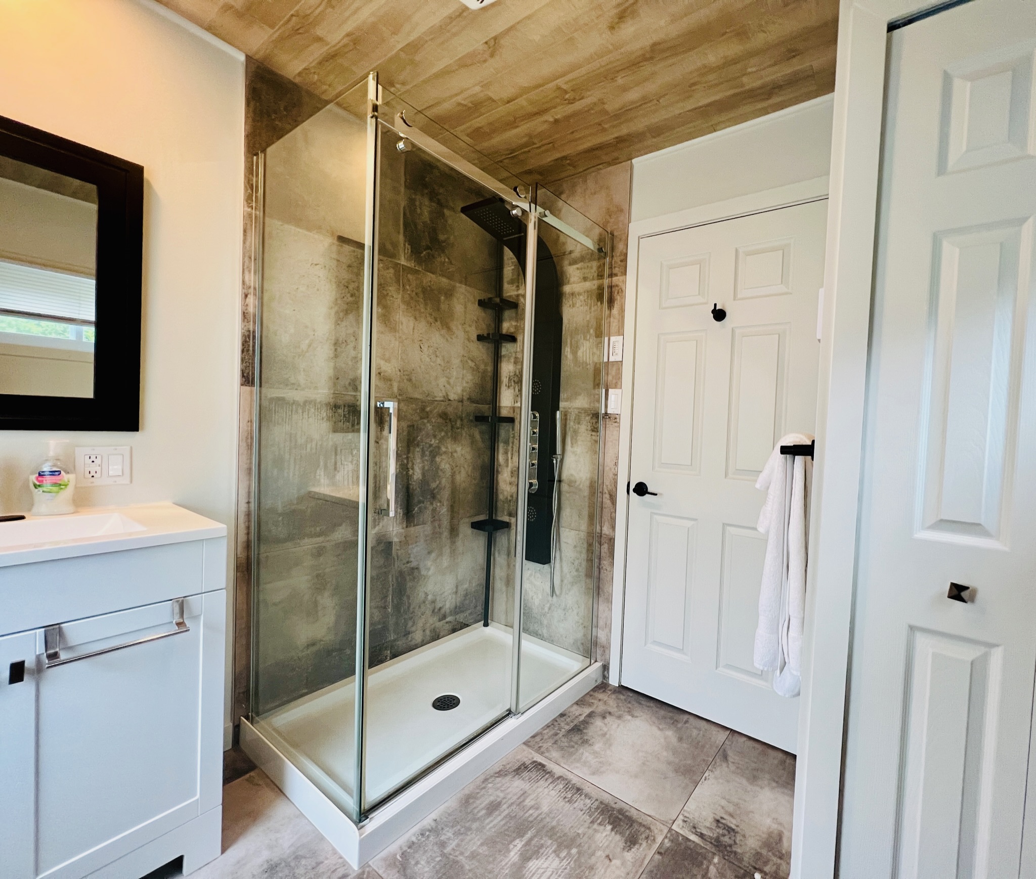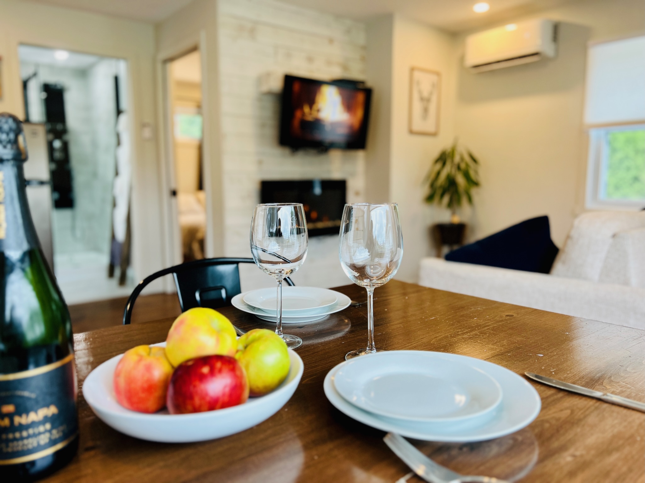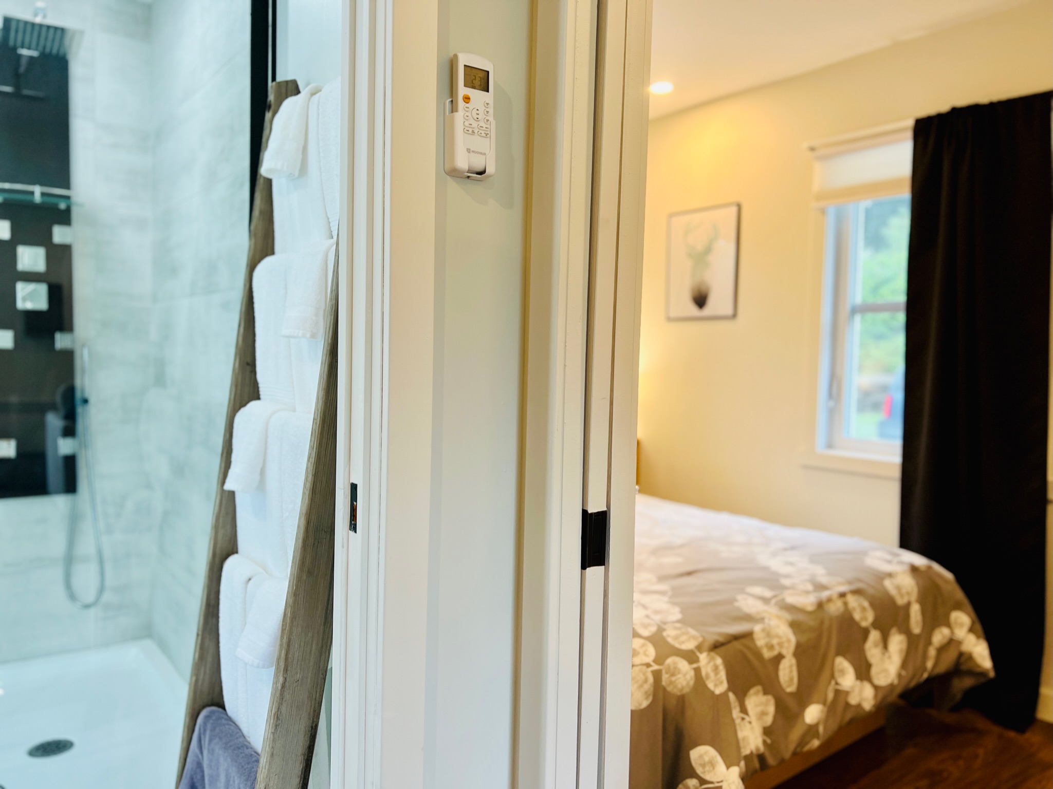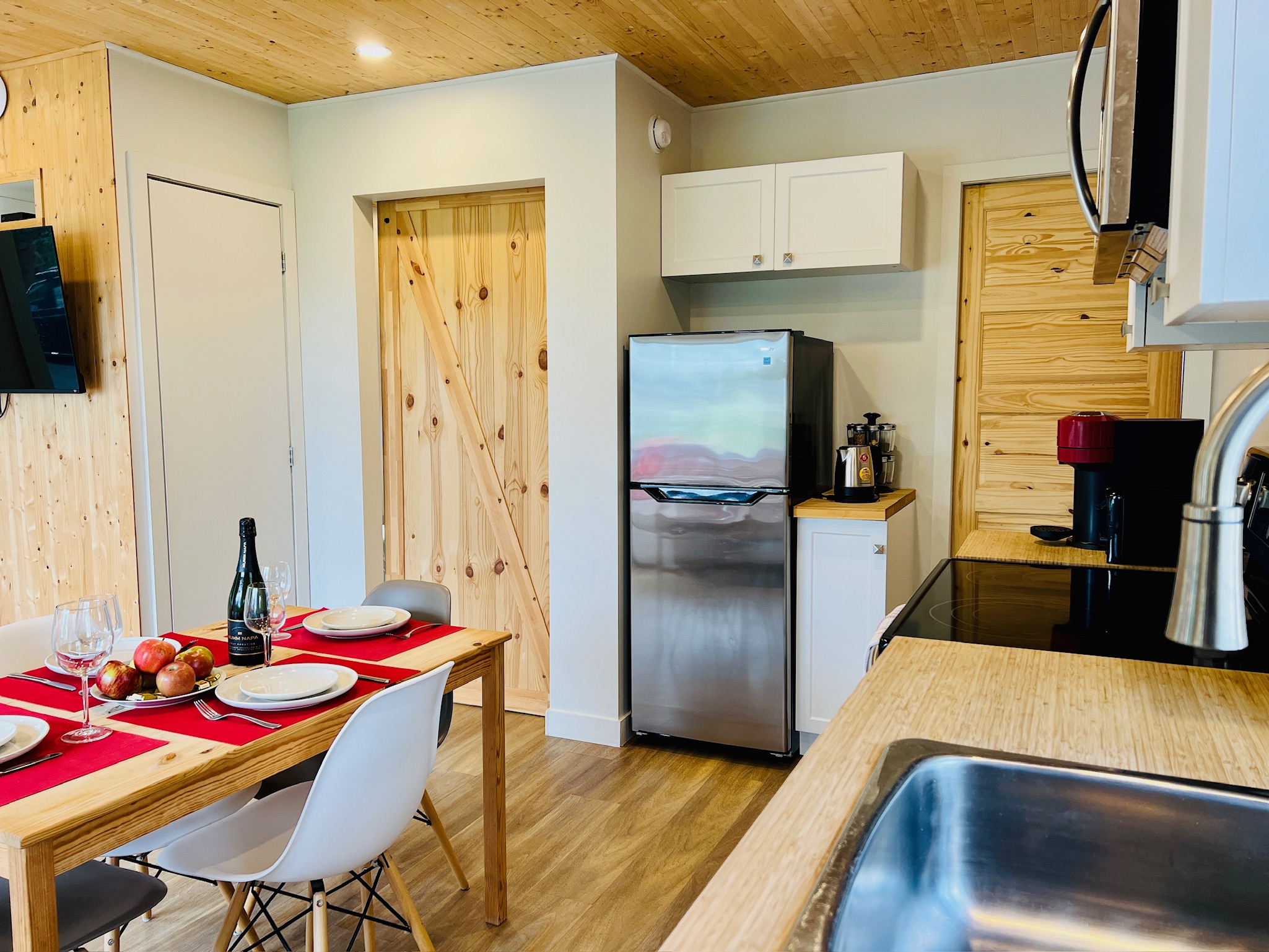 Petit chalet ENTIÈREMENT RENOVÉ. Le chalet est Idéal pour les couples puisque l’accès pour la salle de bain se fait par la chambre. La plage est à environ 300m, l’accès se fait par le parc (3 minutes à pied). Le chalet est situé dans un quartier tranquille, en plus d'être à 5 km du Centre-Ville. Vous partagez le terrain avec 6 autres petits chalets situés sur le même terrain. Plusieurs restaurants sont situés à moins de 10 minutes du chalet.